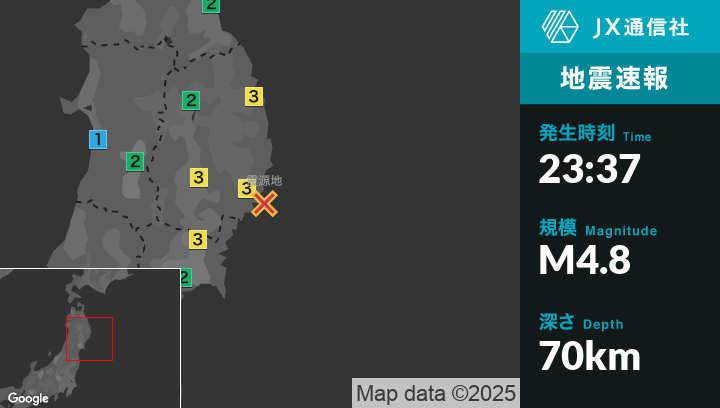| 発生時刻 | 2025年2月12日 23時37分頃 |