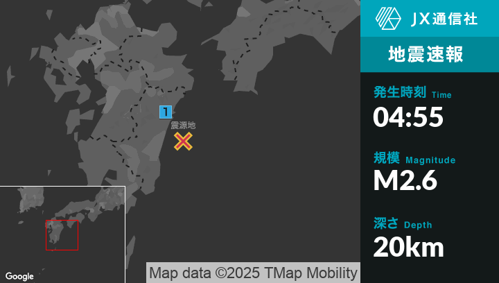 4月25日 4時55分頃発生した地震(最大震度1)