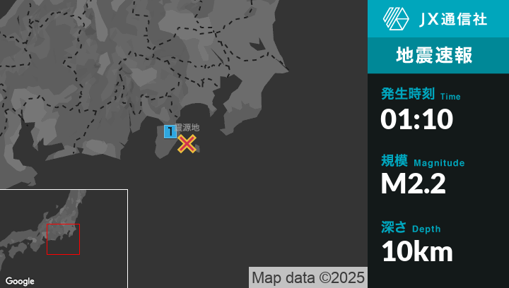 6月2日 1時10分頃発生した地震(最大震度1)