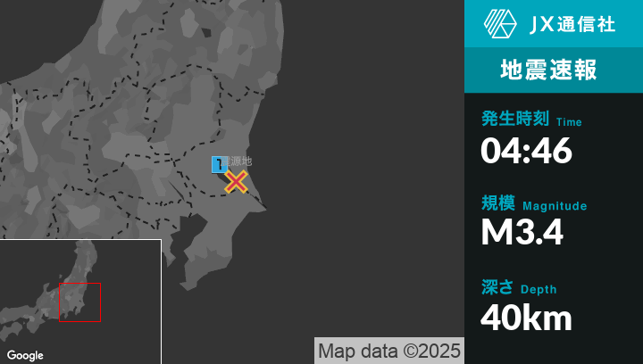 6月3日 4時46分頃発生した地震(最大震度1)