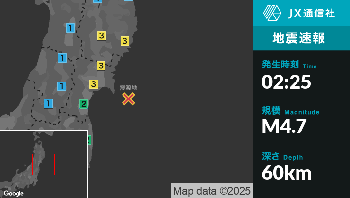 | 発生時刻 | 2025年12月1日 2時25分頃 |