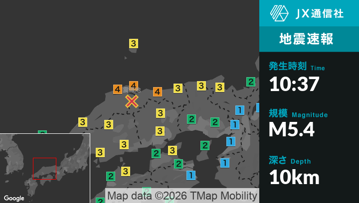 震源地島根県東部