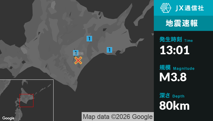 1月8日 13時01分頃発生した地震(最大震度1)
