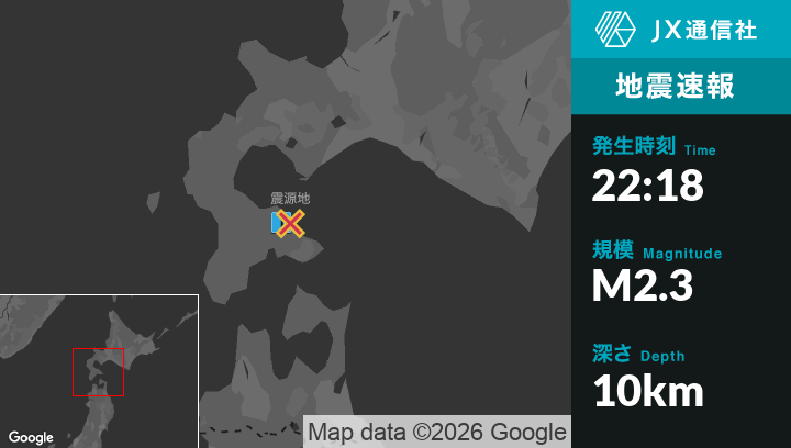 1月25日 22時18分頃発生した地震(最大震度1)