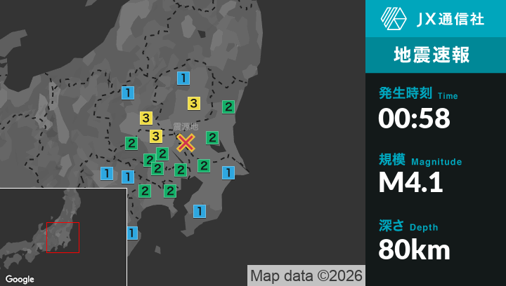 ※ 震度3未満の地震が発生した地域などにつきましては、情報が入り次第更新いたします。