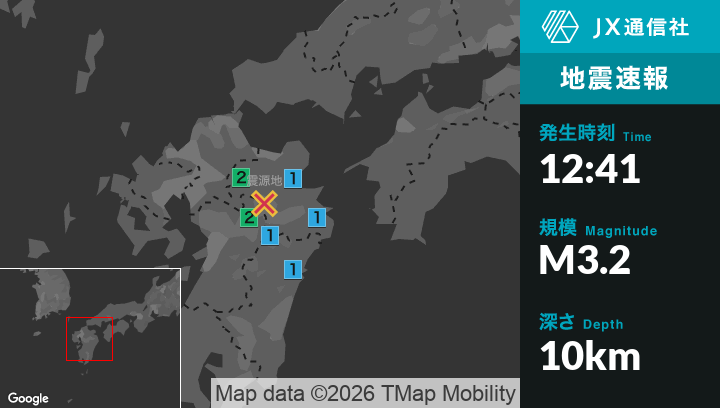 3月1日 12時41分頃発生した地震(最大震度2)