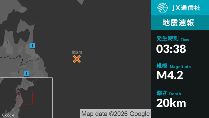 3月2日 3時38分頃発生した地震(最大震度1)