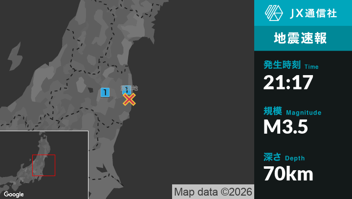 3月4日 21時17分頃発生した地震(最大震度1)