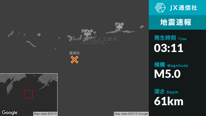 | 震源地 | アラスカのAmatignak Islandから東南東113kmの地点 |