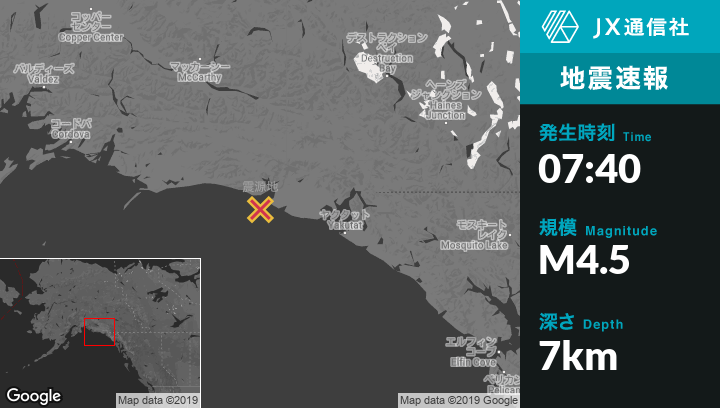 | 震源地 | アラスカのCape Yakatagaから東南東52kmの地点 |