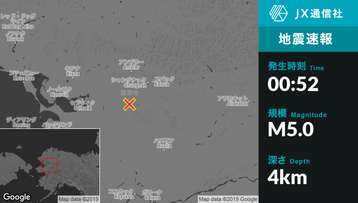 | 震源地 | アラスカのKobukから南西60kmの地点 |
