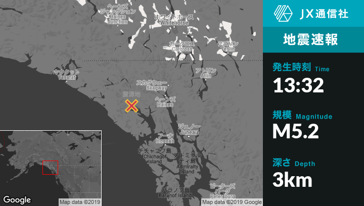 | 震源地 | アラスカのHainesから西88kmの地点 |