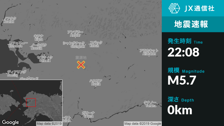 | 震源地 | アラスカのKobukから南南西70kmの地点 |