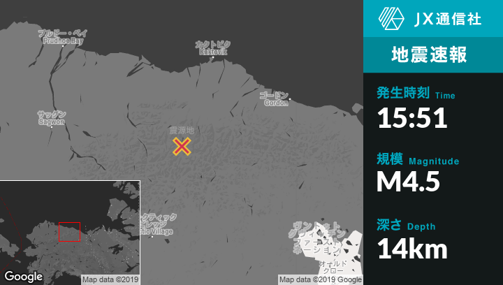 | 震源地 | アラスカのArctic Villageから北北東108kmの地点 |