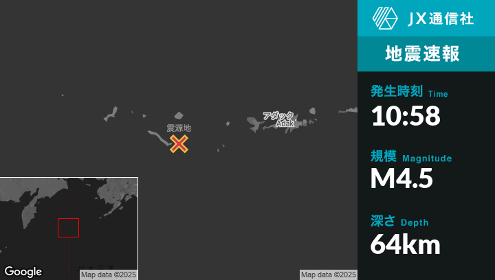 | 震源地 | アラスカのAdakから西南西262kmの地点 |