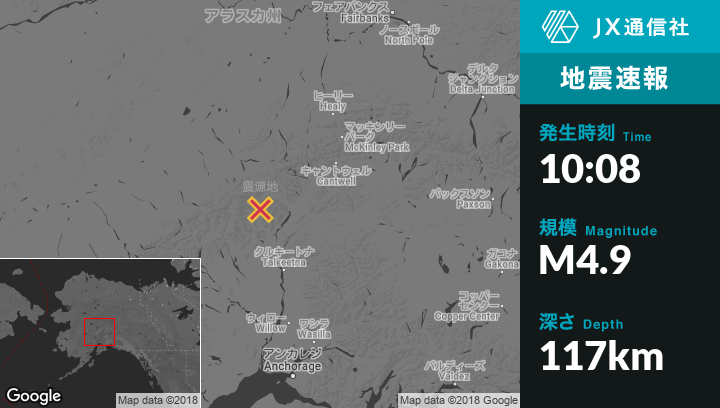 | 震源地 | アラスカのTalkeetnaから北北西77kmの地点 |