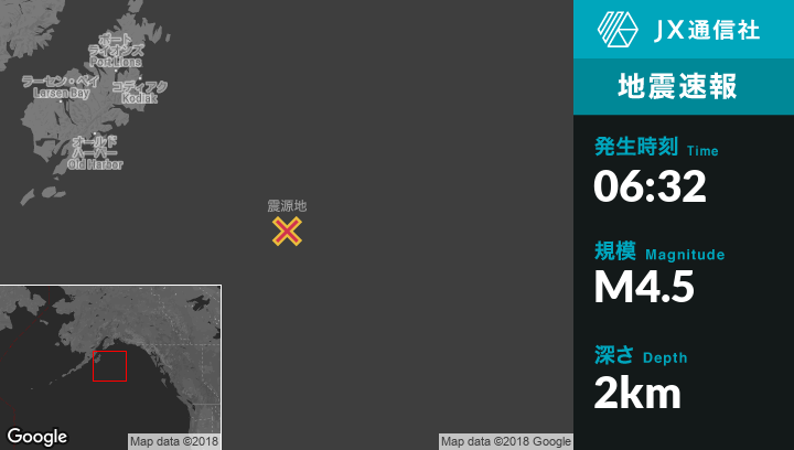 | 震源地 | アラスカのKodiakから南東251kmの地点 |