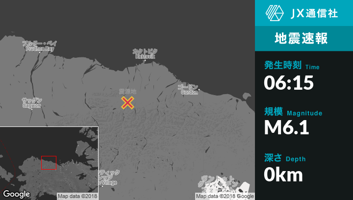 | 震源地 | アラスカのKaktovikから南南西74kmの地点 |