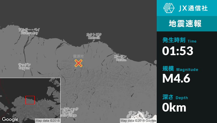 | 震源地 | アラスカのKaktovikから南西74kmの地点 |