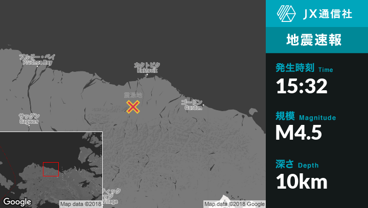| 震源地 | アラスカのKaktovikから南南西54kmの地点 |