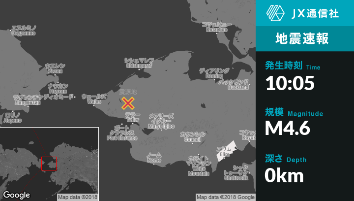 | 震源地 | アラスカのShishmarefから南南西67kmの地点 |