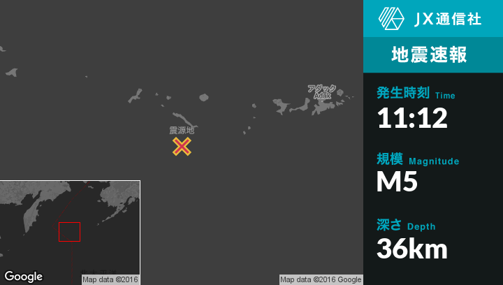 | 震源地 | アラスカのLittle Sitkin Islandから南南東101kmの地点 |