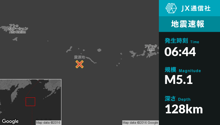 | 震源地 | アラスカのLittle Sitkin Islandから南南西64kmの地点 |