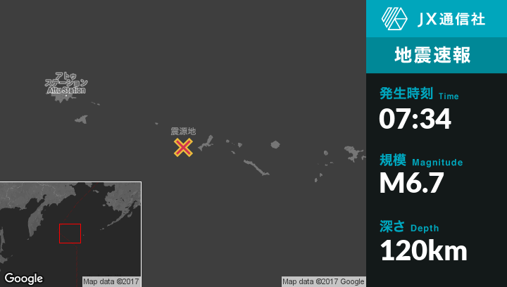 | 震源地 | アラスカのKiska Volcanoから西南西60kmの地点 |