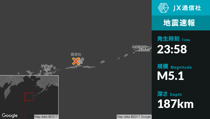 | 震源地 | アラスカのAtkaから北西32kmの地点 |