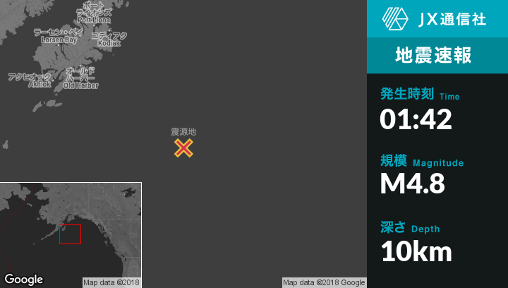 | 震源地 | アラスカのKodiakから南東257kmの地点 |