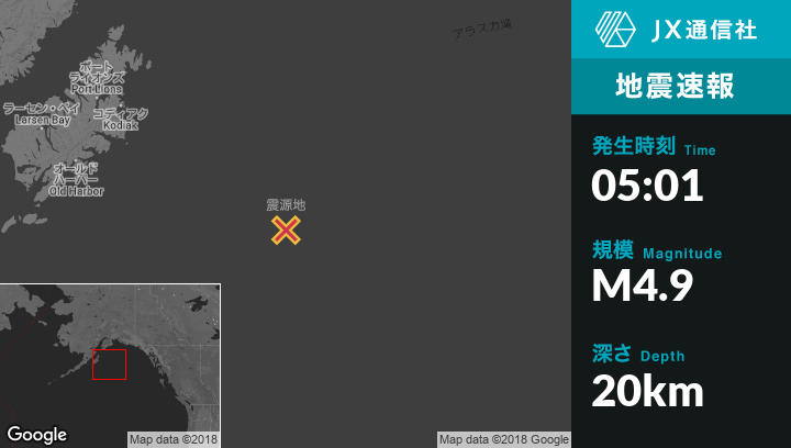 | 震源地 | アラスカのKodiakから南東246kmの地点 |
