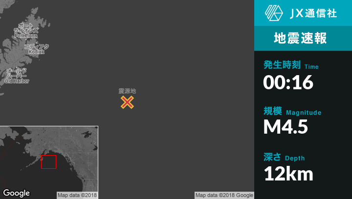 | 震源地 | アラスカのKodiakから東南東290kmの地点 |