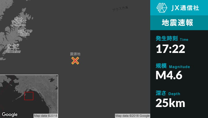 | 震源地 | アラスカのKodiakから東南東268kmの地点 |