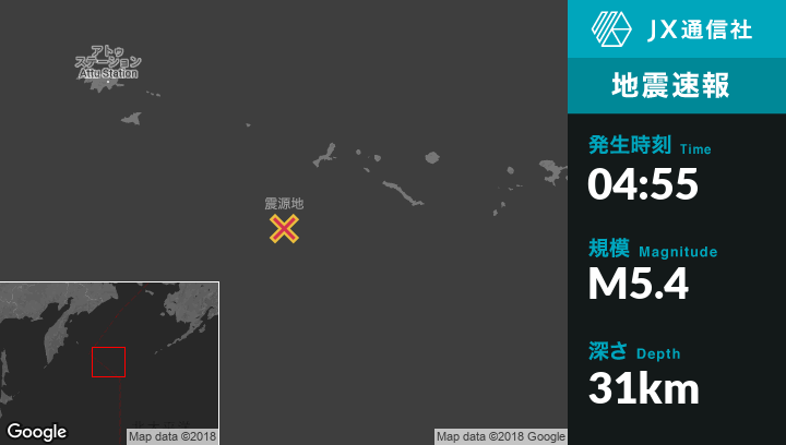 | 震源地 | アラスカのKiska Volcanoから南南西126kmの地点 |