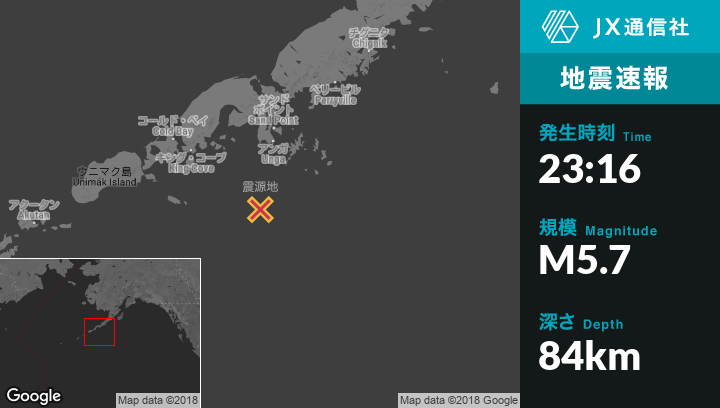 | 震源地 | アラスカのChernabura Islandから西南西92kmの地点 |
