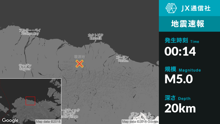 | 震源地 | アラスカのKaktovikから南西73kmの地点 |