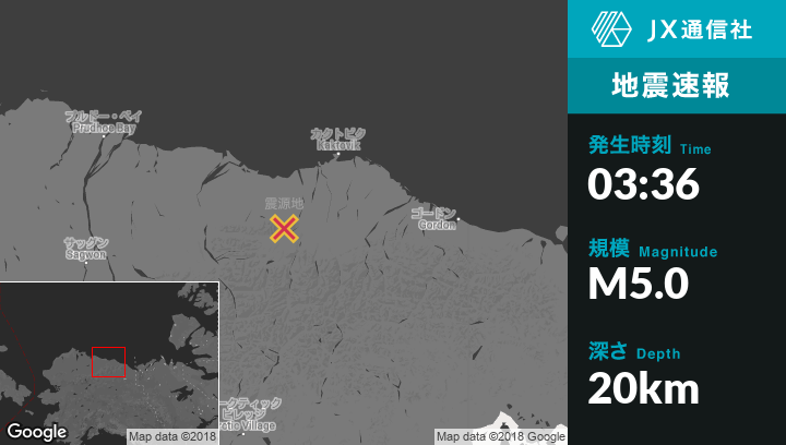 | 震源地 | アラスカのKaktovikから南西67kmの地点 |