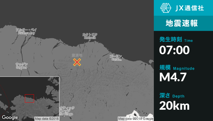 | 震源地 | アラスカのKaktovikから南南西68kmの地点 |