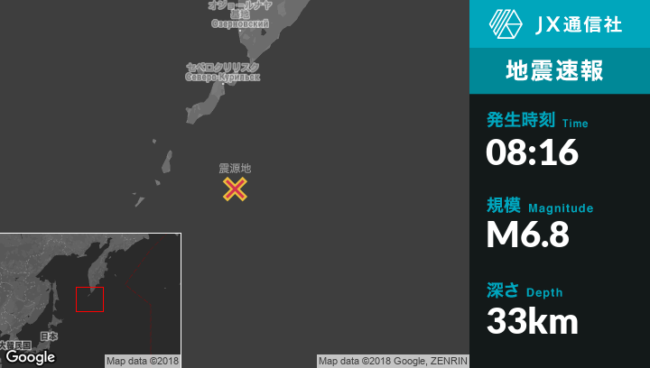 | 震源地 | ロシアのSevero-Kuril'skから南176kmの地点 |