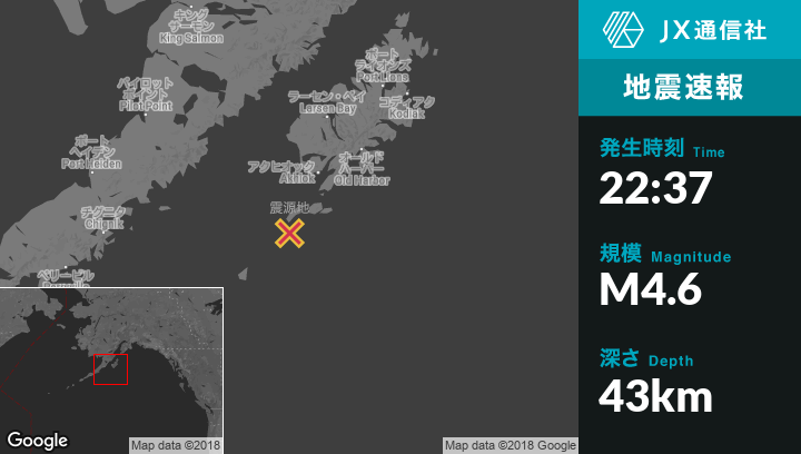| 震源地 | アラスカのChirikof Islandから北東81kmの地点 |