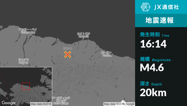 | 震源地 | アラスカのKaktovikから南西69kmの地点 |