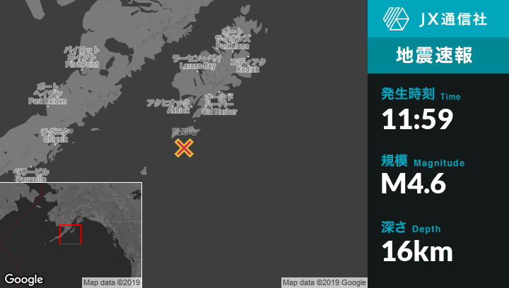 | 震源地 | アラスカのChirikof Islandから北東93kmの地点 |