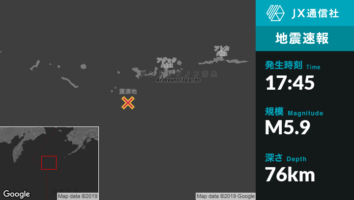 | 震源地 | アラスカのAmatignak Islandから東南東56kmの地点 |