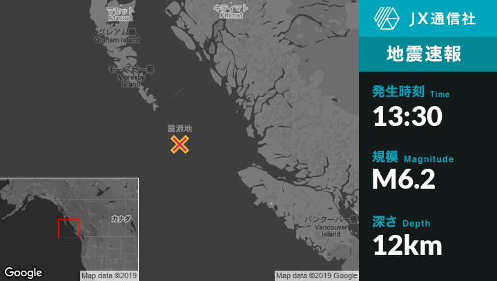 | 震源地 | カナダのBella Bellaから西南西170kmの地点 |