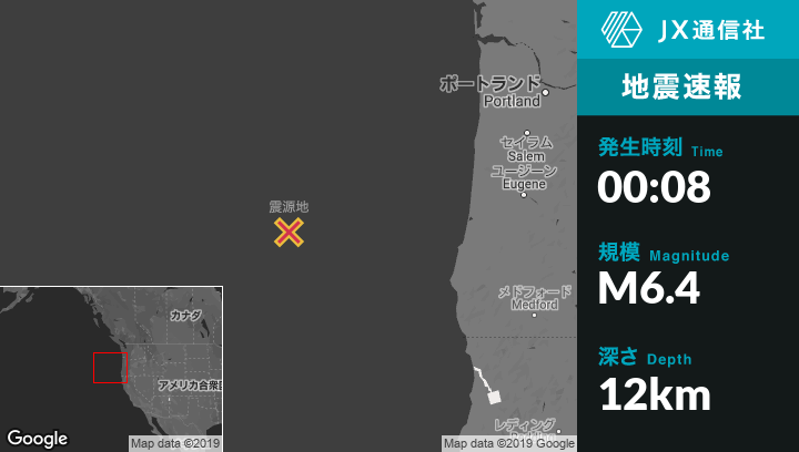 | 震源地 | オレゴンのBandonから西北西276kmの地点 |