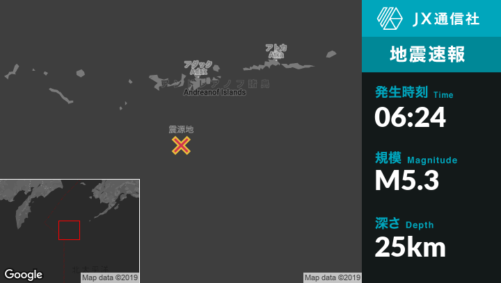 | 震源地 | アラスカのAdakから南南西147kmの地点 |