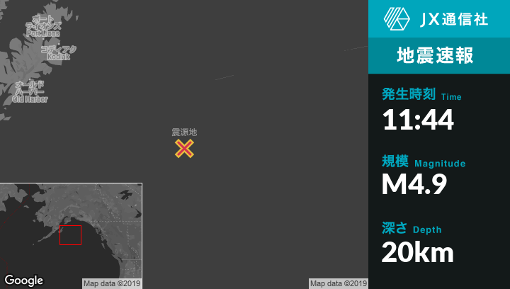 | 震源地 | アラスカのKodiakから南東303kmの地点 |