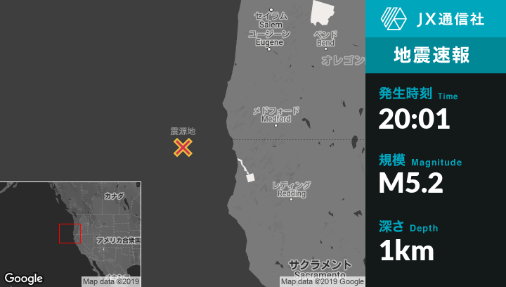 | 震源地 | オレゴンのBrookingsから西126kmの地点 |
