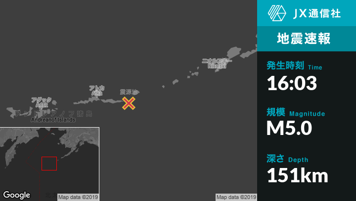 | 震源地 | アラスカのAtkaから東96kmの地点 |