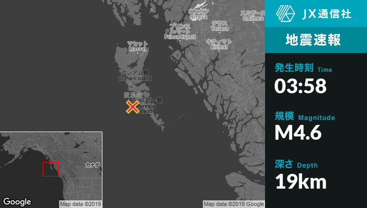 11月10日 03:58頃、カナダのMassetから南147kmの地点でM4.6の地震がありました。